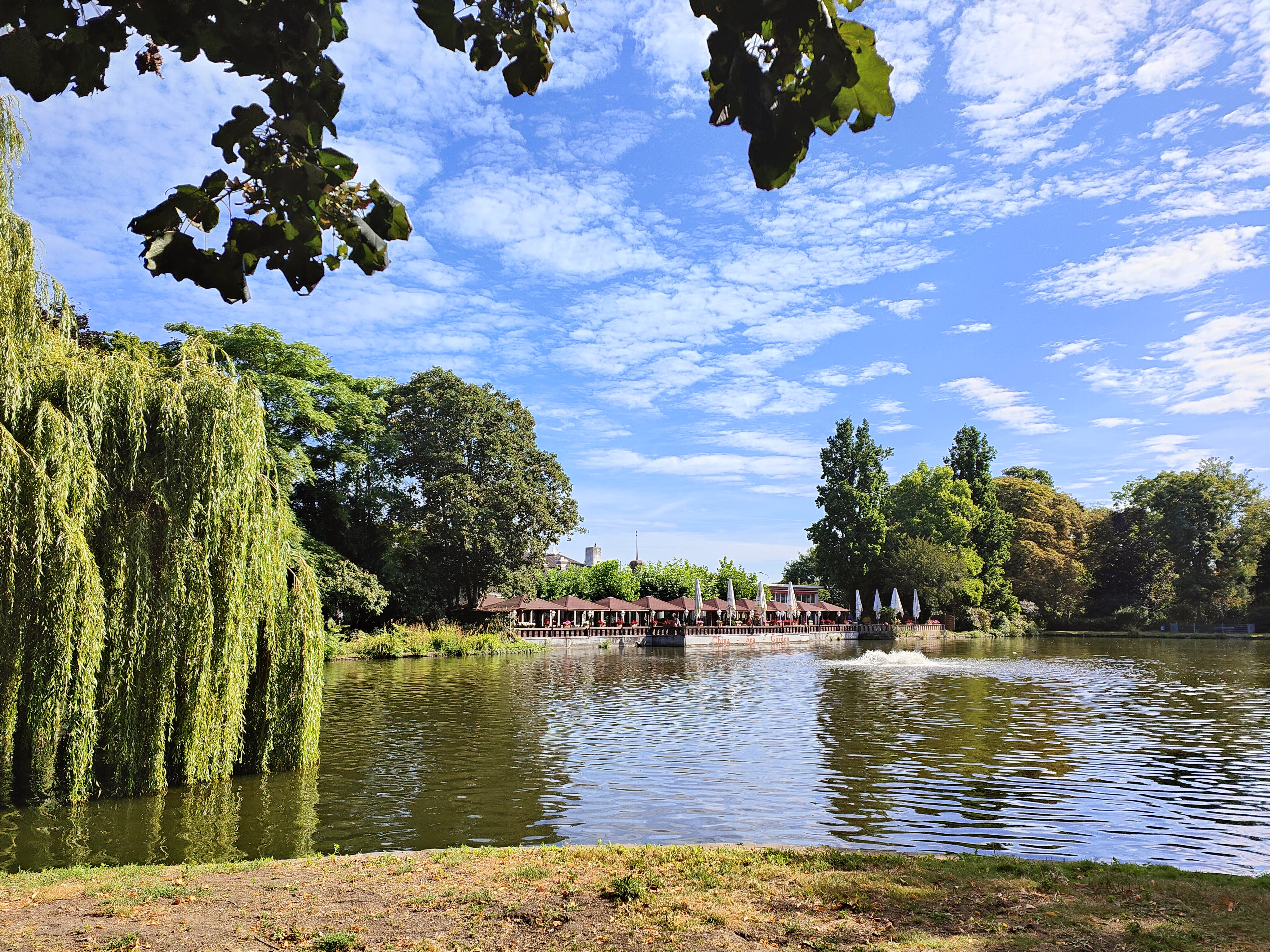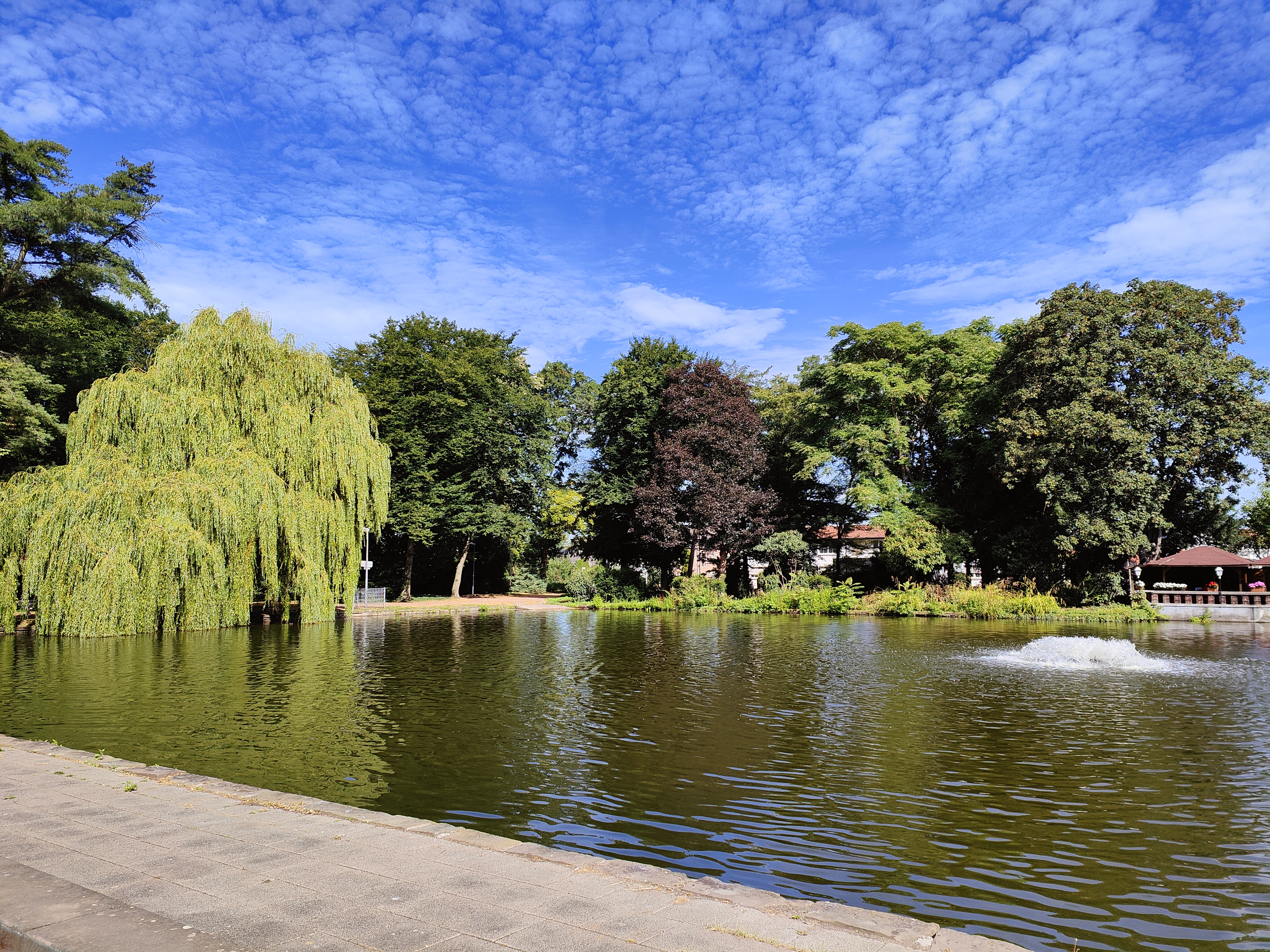 Ein Stückchen weiter in den Park hinein, finden Sie einen kleinen Teich. Dort werden Sie mit einem schönen Blick auf eine alte Trauerweide belohnt und können den Stadtenten beim Plantschen zu sehen. Sollten Sie Hunger haben, können Sie auf der malerischen Seeterasse des Restaurant China Sea Garden chinesisches oder mongolisches Speisen zu sich nehmen, oder ein Feierabendbier genießen. Für die kleinen Bewohner von Willich gibt es im Park einen großen Spielplatz, der zum Netzwerken und Toben einlädt.