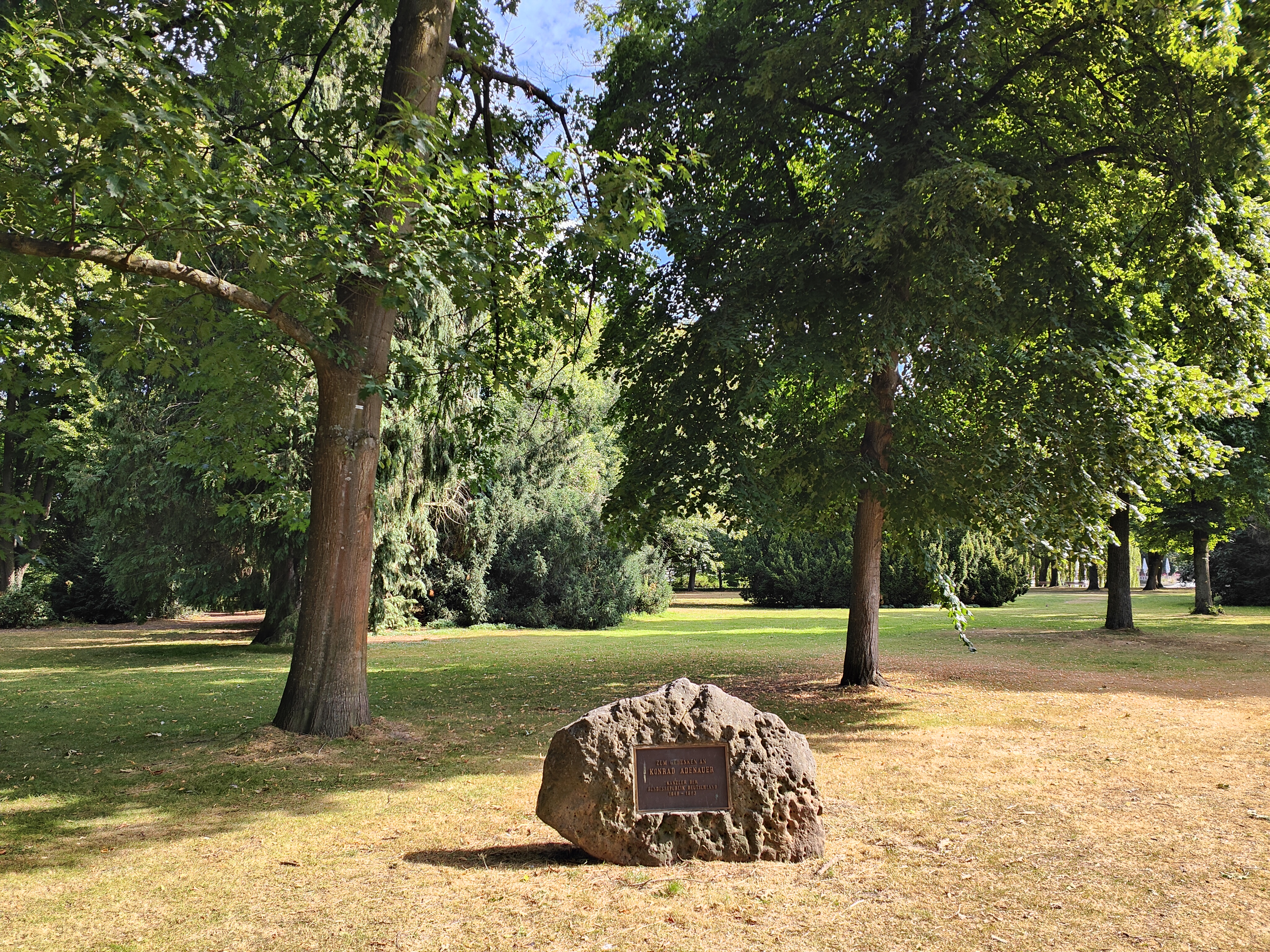 Unser erster Ausflugspunkt ist der Konrad-Adenauer-Park: Direkt am Eingang des Parks finden Sie einen Gedenkstein, denn der Park wurde nach dem ersten Kanzler der Bundesrepublik Deutschland benannt.